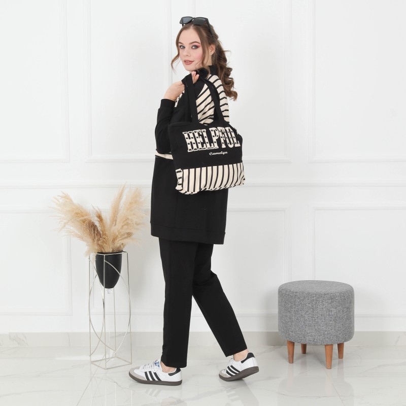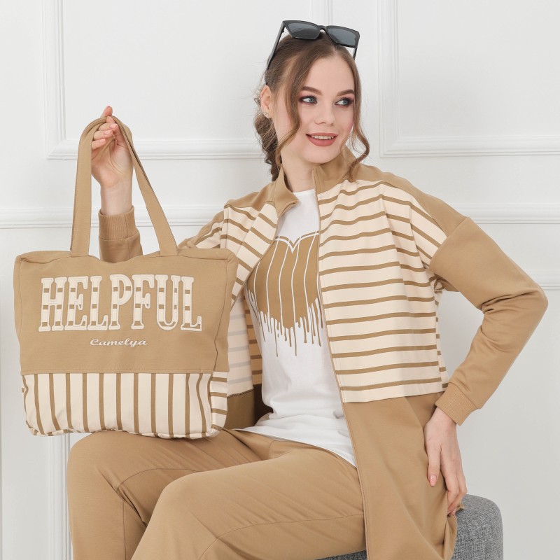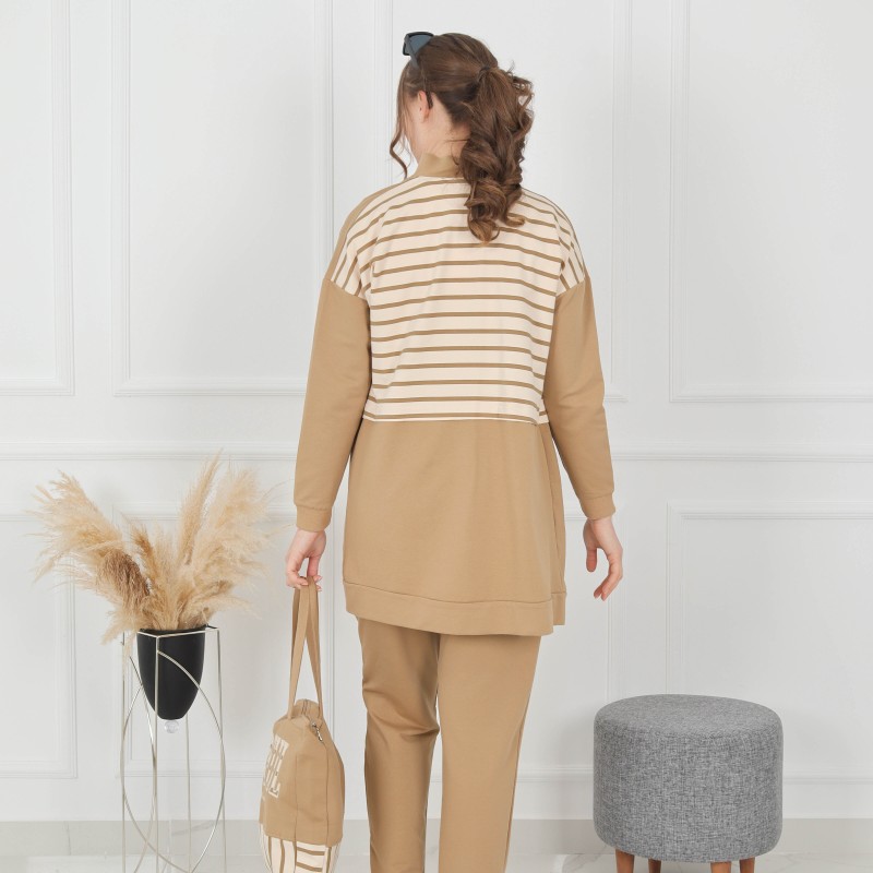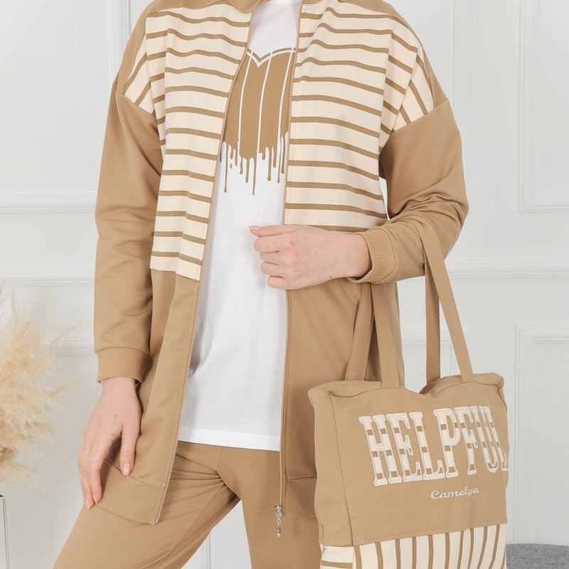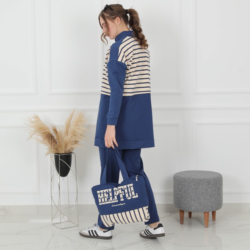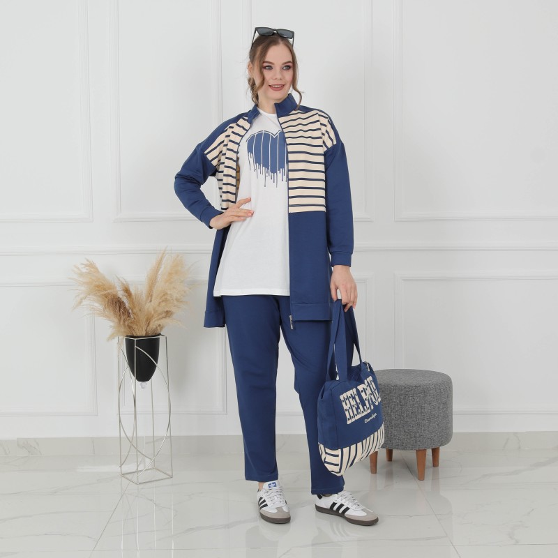 Product Description: Sport Coton Pajamas 4 pieces : long jacket and Tshirt, sweatpants and hanbag.