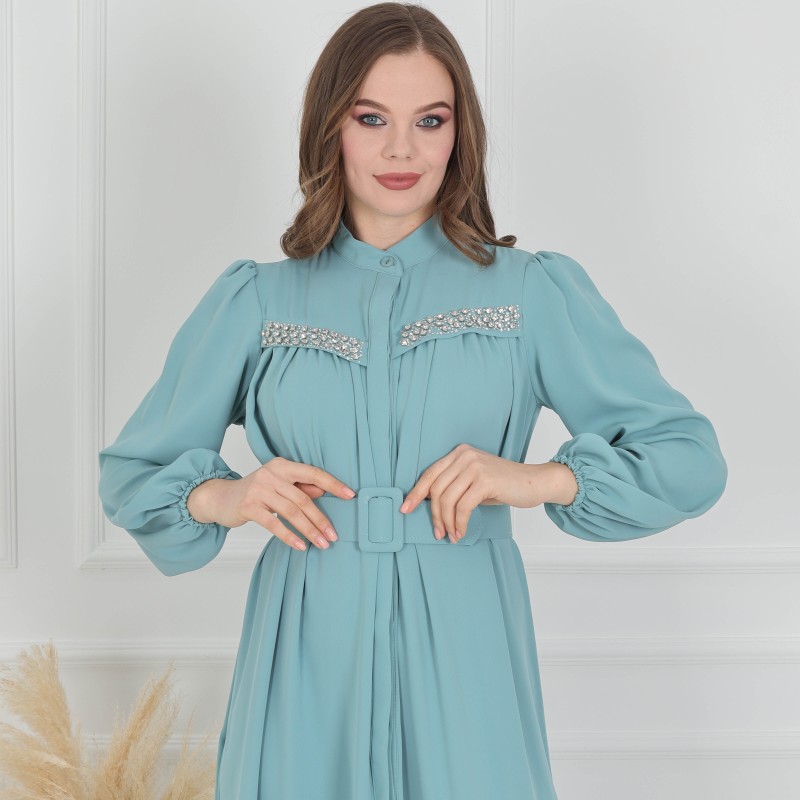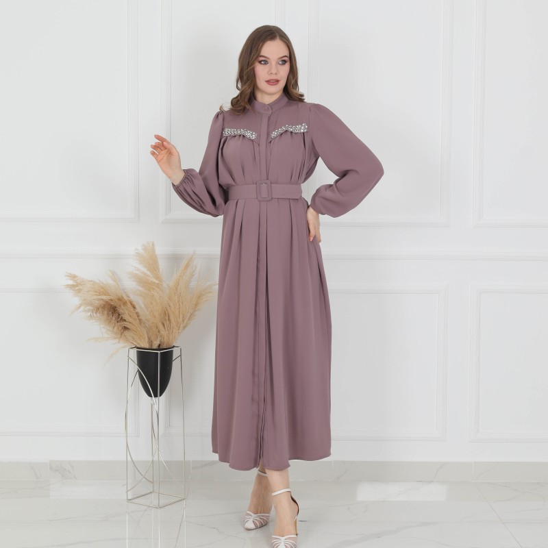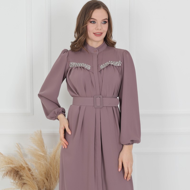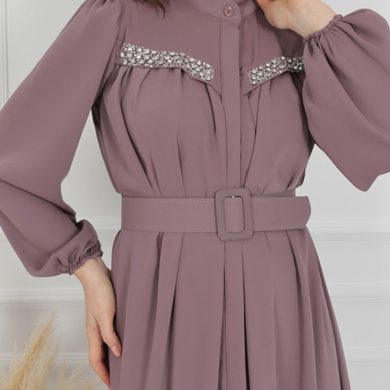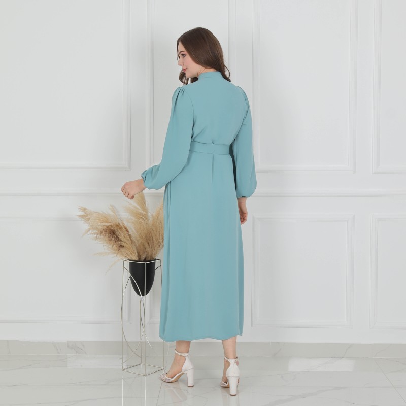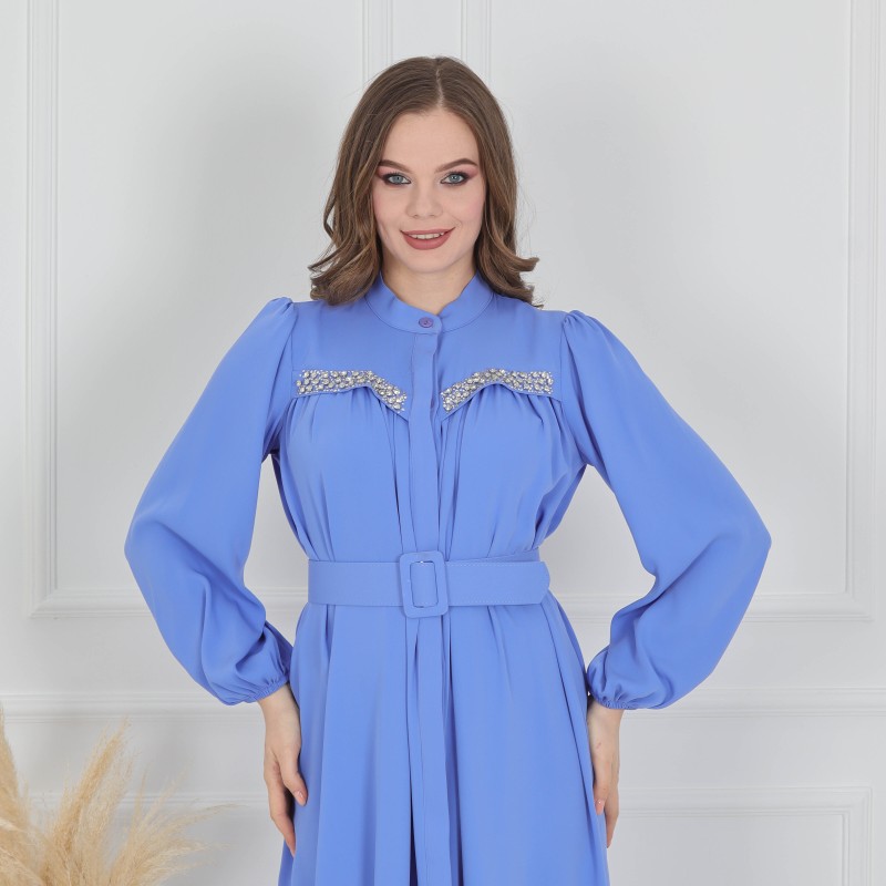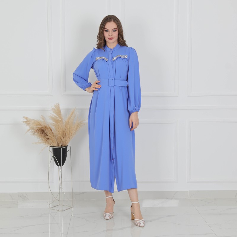 Product Description: Casual dress with belt, made of high-quality fabric.