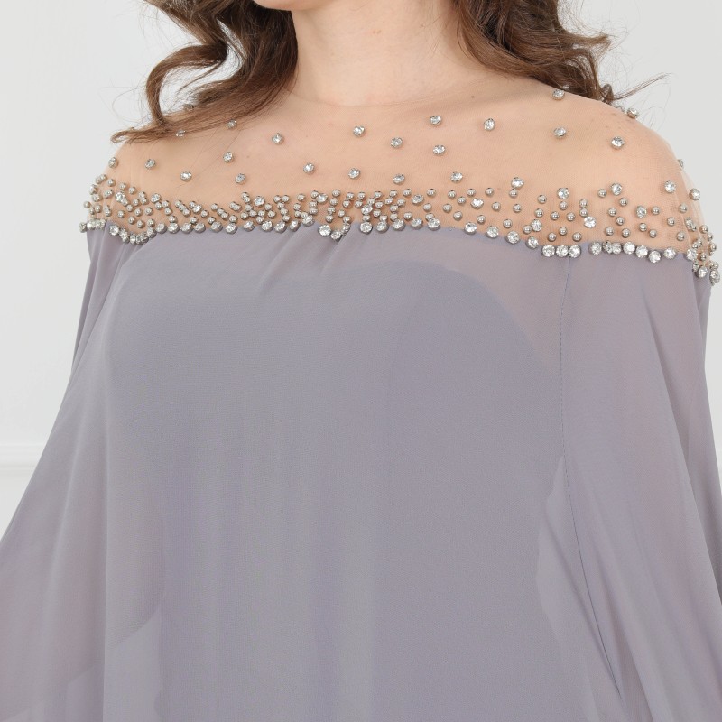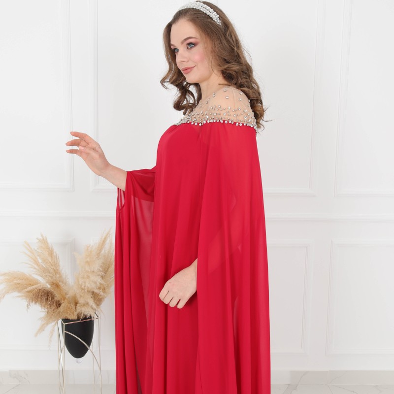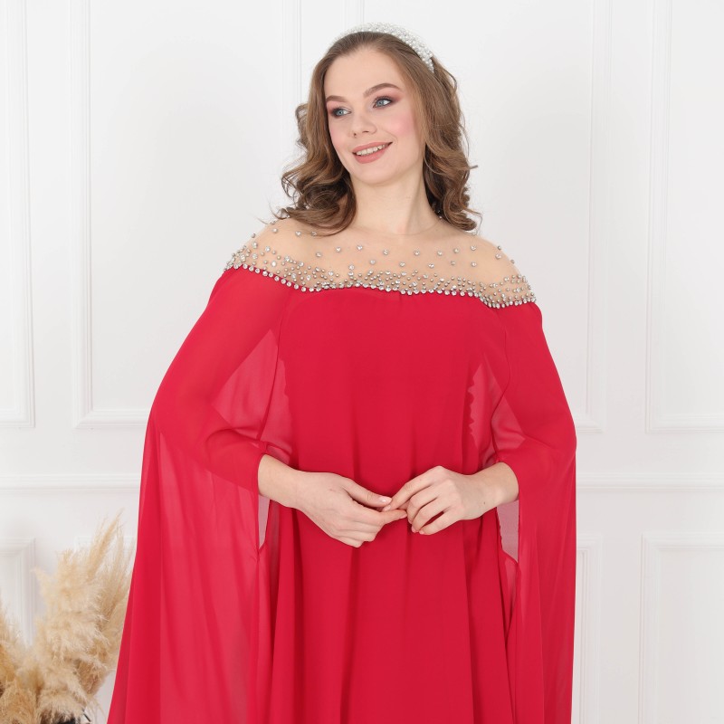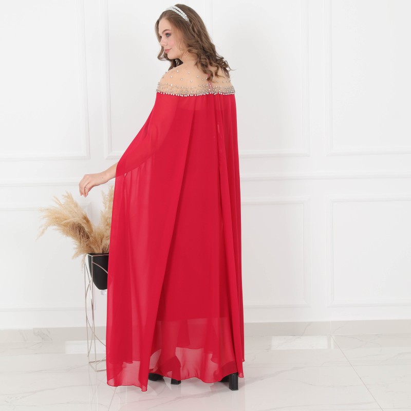 Product Description: Detailed Dress 2 pieces off-shoulders dress and chiffon cover, made of high-quality fabric.