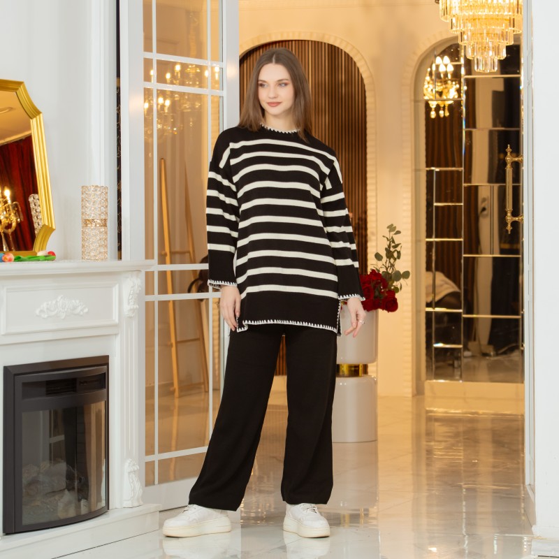 Product Description: Knitwear set of 2 pieces: Long Blouse and Knitted Pants.